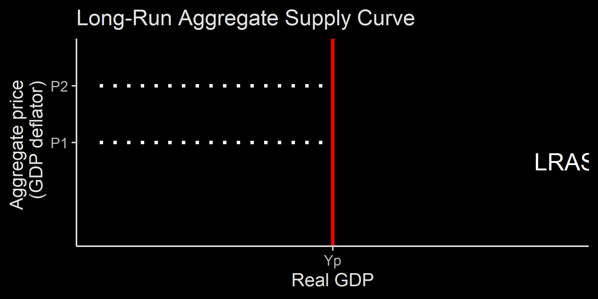 In the long-run, adjustment of prices leads to no change in aggregate output / GDP.