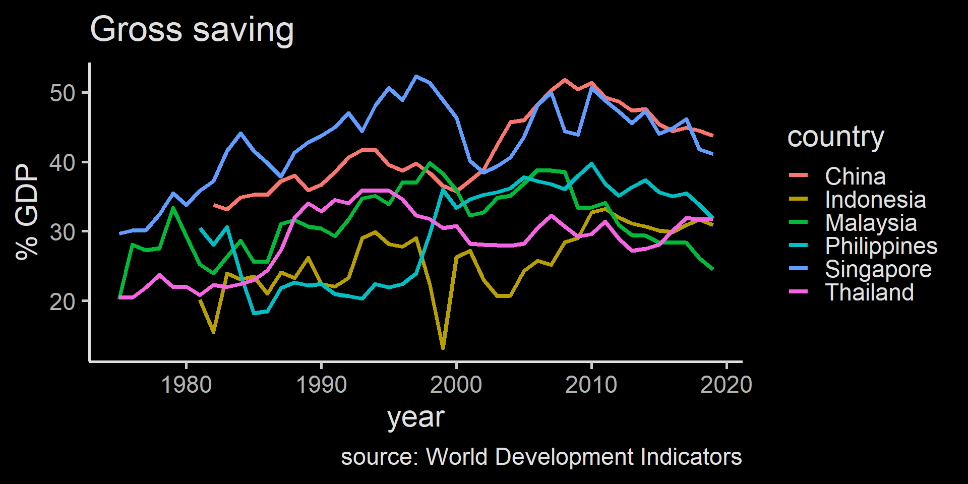 where C is consumption, I is investment (which comes from saving), G is government expenditure (which comes mostly from taxes), and (X−M) is export minus import (aka. trade balance)