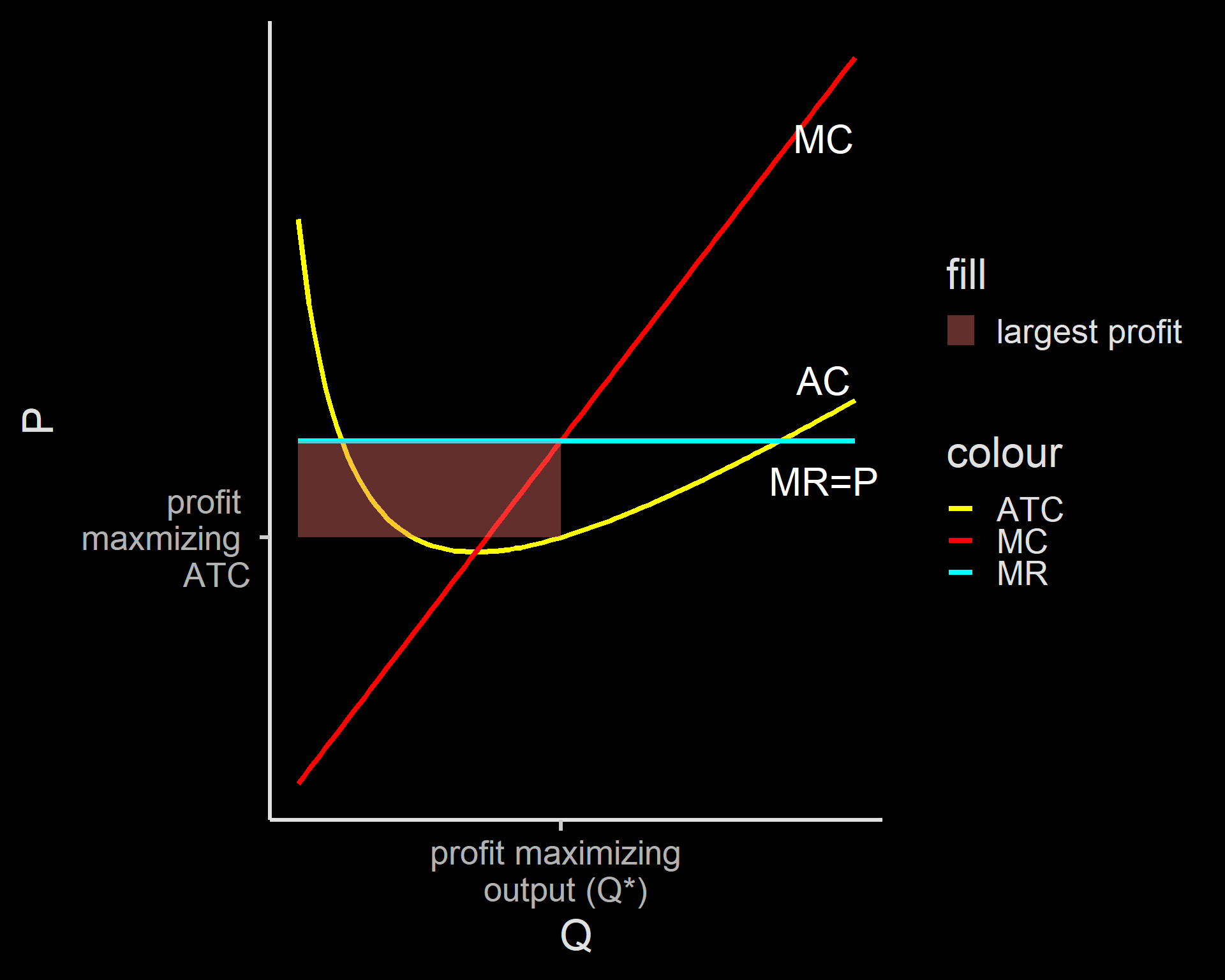 - profit maximizing when \(MC=MR\)