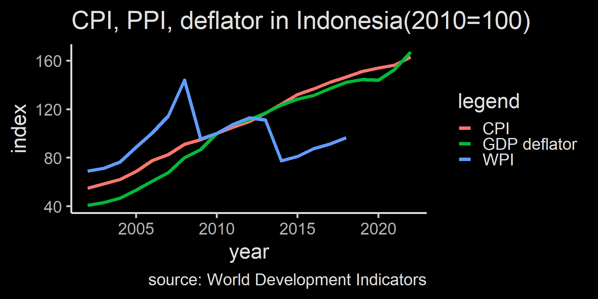 WPI is much more volatile and responsive to the global market condition.