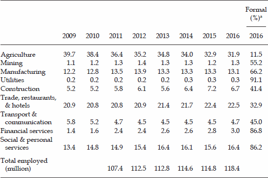 Source: Data from Sakernas, 2009–16. Taken from Sarah Xua Dong and Chris Manning (2017) Labour-Market Developments at a Time of Heightened Uncertainty. Bulletin of Indonesian Economic Studies, 53:1, 1-25, DOI: 10.1080/00074918.2017.1326201