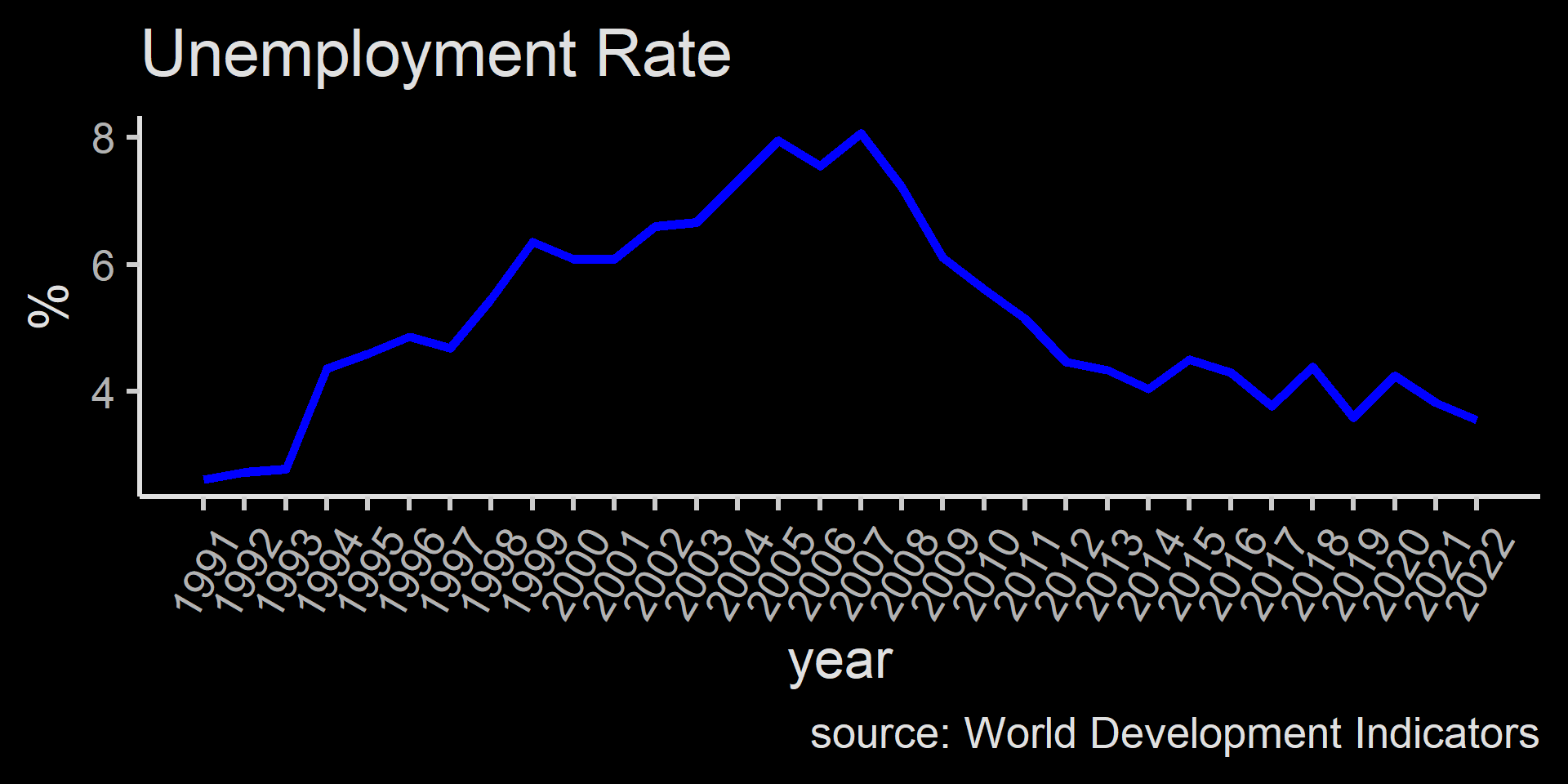 Indonesia had a very low unemployment rate during the 90s amid industrial expansion