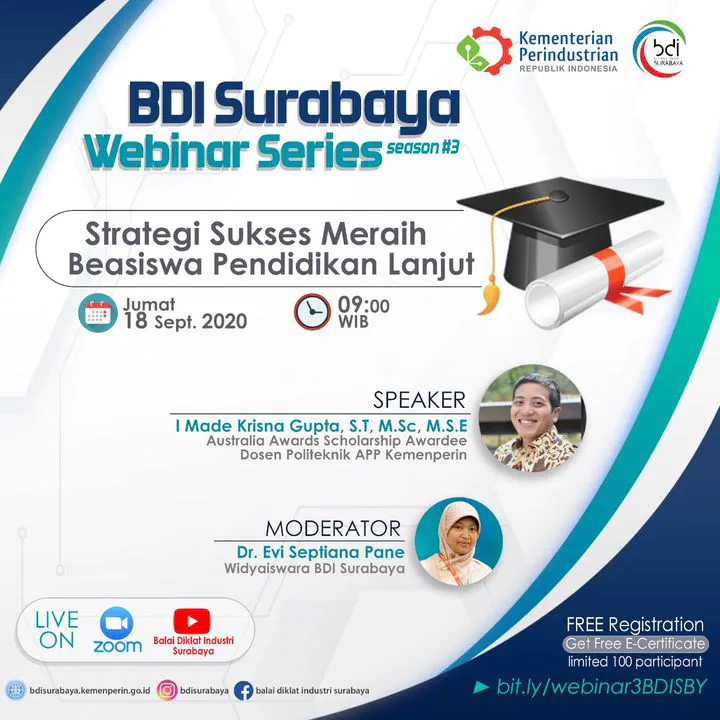 Dalam kesempatan ini, saya berbagi pengalaman saya dalam mencari beasiswa S2 dan S3 kepada rekan-rekan saya di Kementerian Perindustrian. Pengalaman mencari beasiswa berbeda-beda untuk setiap orang, namun diharapkan sharing ini dapat membantu. Ketuk