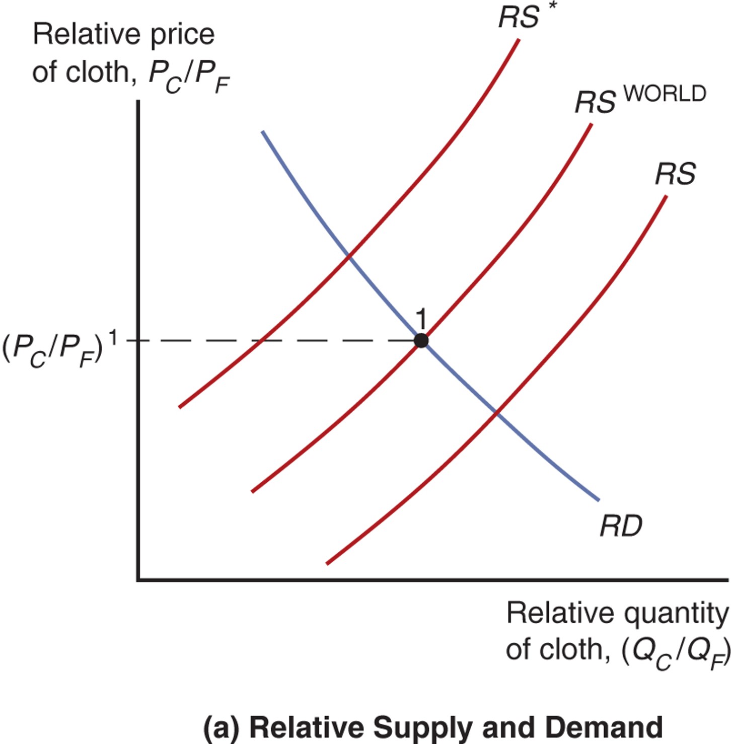 Domestic producers will receive a higher relative price of cloth when they export, and therefore will be more willing to switch to cloth production: relative supply of cloth will increase.