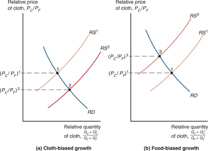 Biased growth and the resulting change in relative supply causes a change in the terms of trade.