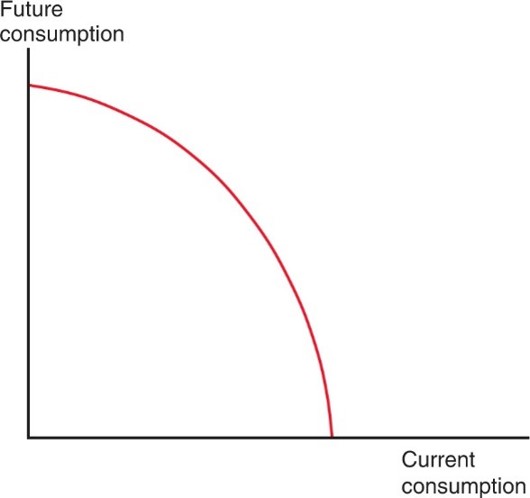 A special kind of production possibility frontier, an intertemporal production possibility frontier, depicts different possible combinations of current output and future output.