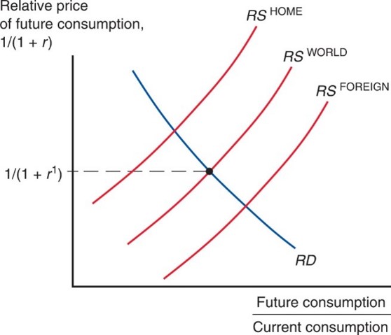 When international borrowing and lending are allowed, the world real interest rate is determined by the intersection of world relative demand and world relative supply.