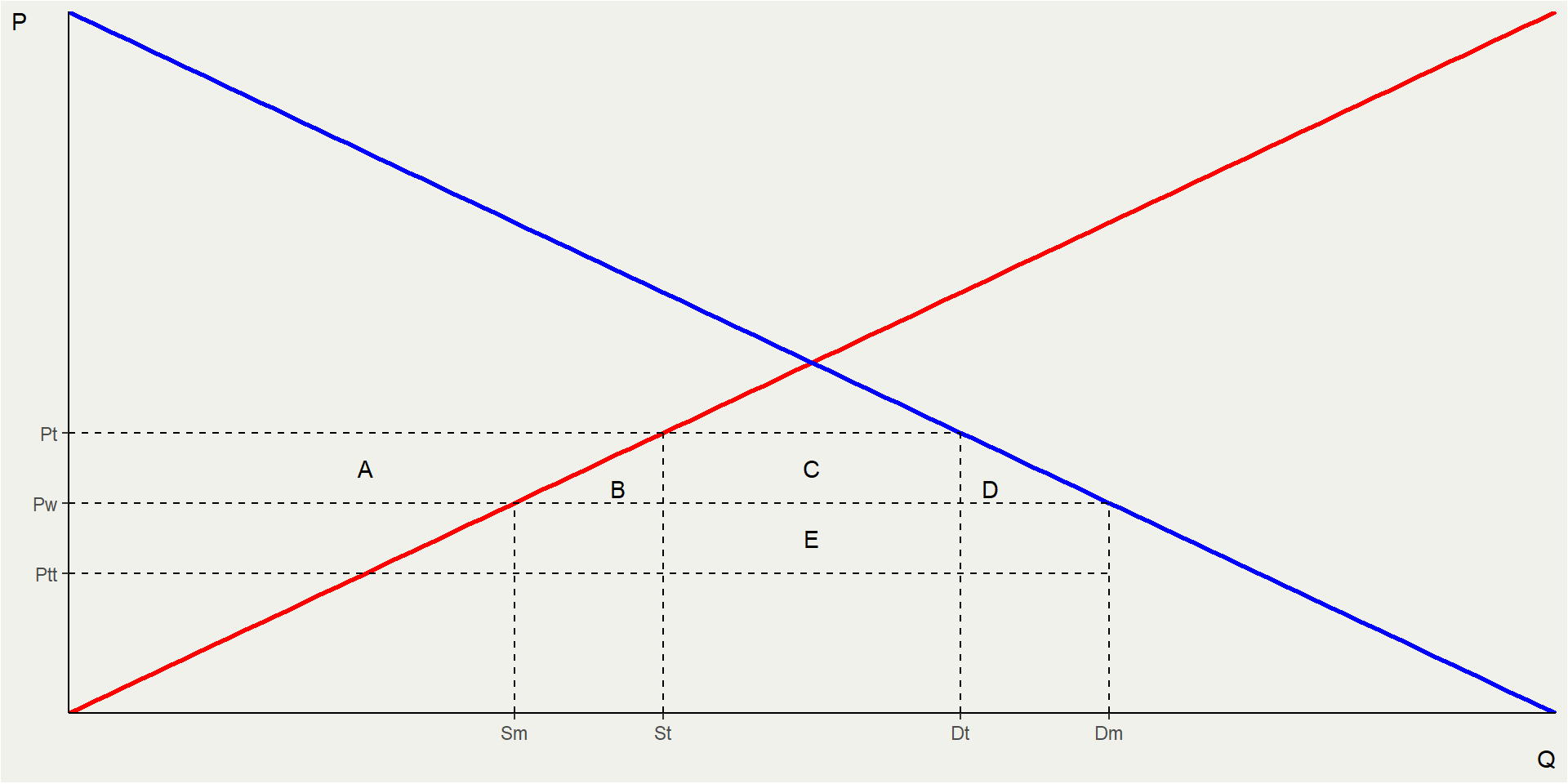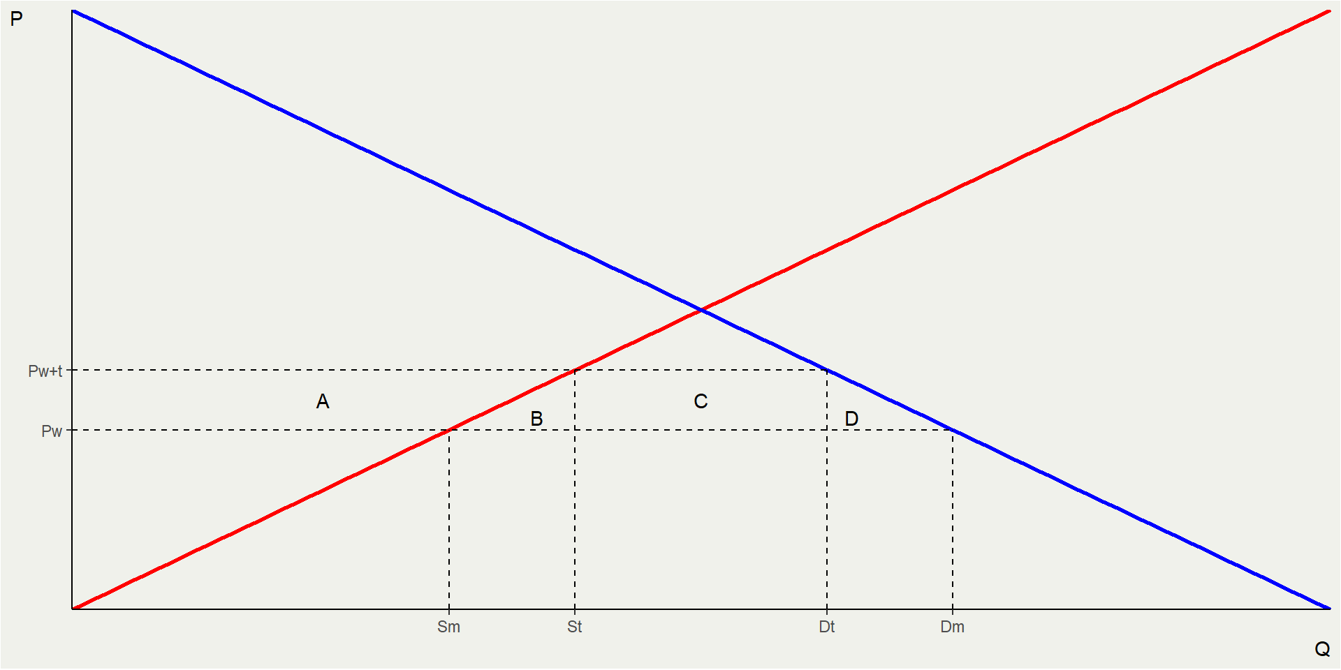 - C = tax revenue = consumer surplus yang pindah ke government.