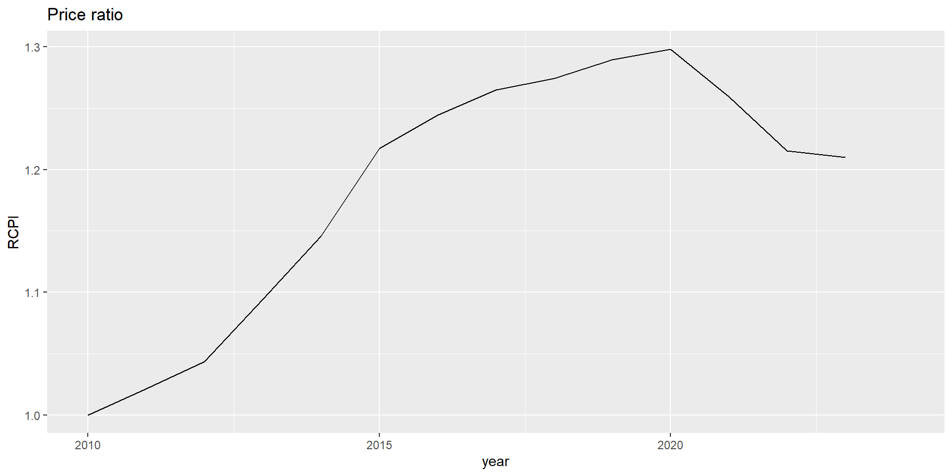 Right-hand side: We do the same, taking growth rate of the price ratio: