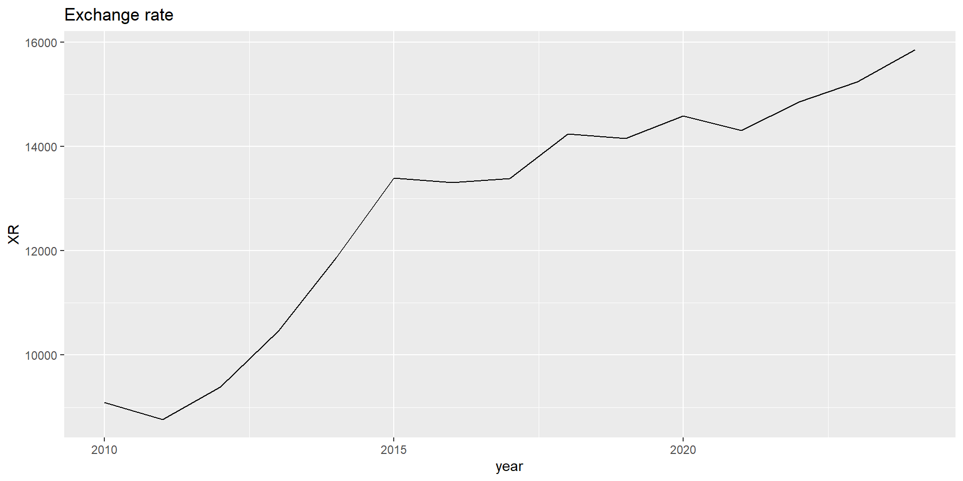 \[\begin{equation} \frac{\Delta E_{Rp/\$,t}}{E_{Rp/\$,t}}=\pi_{ID,t}-\pi_{US,t} \end{equation}\]