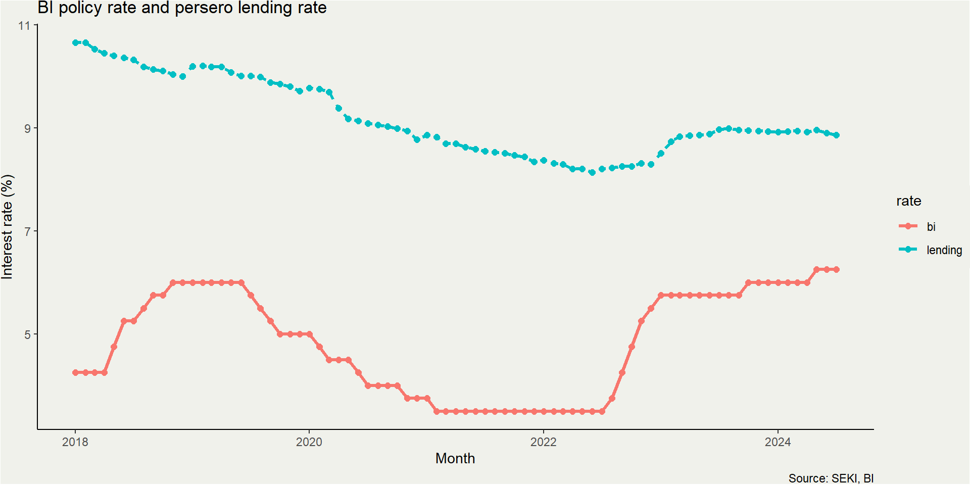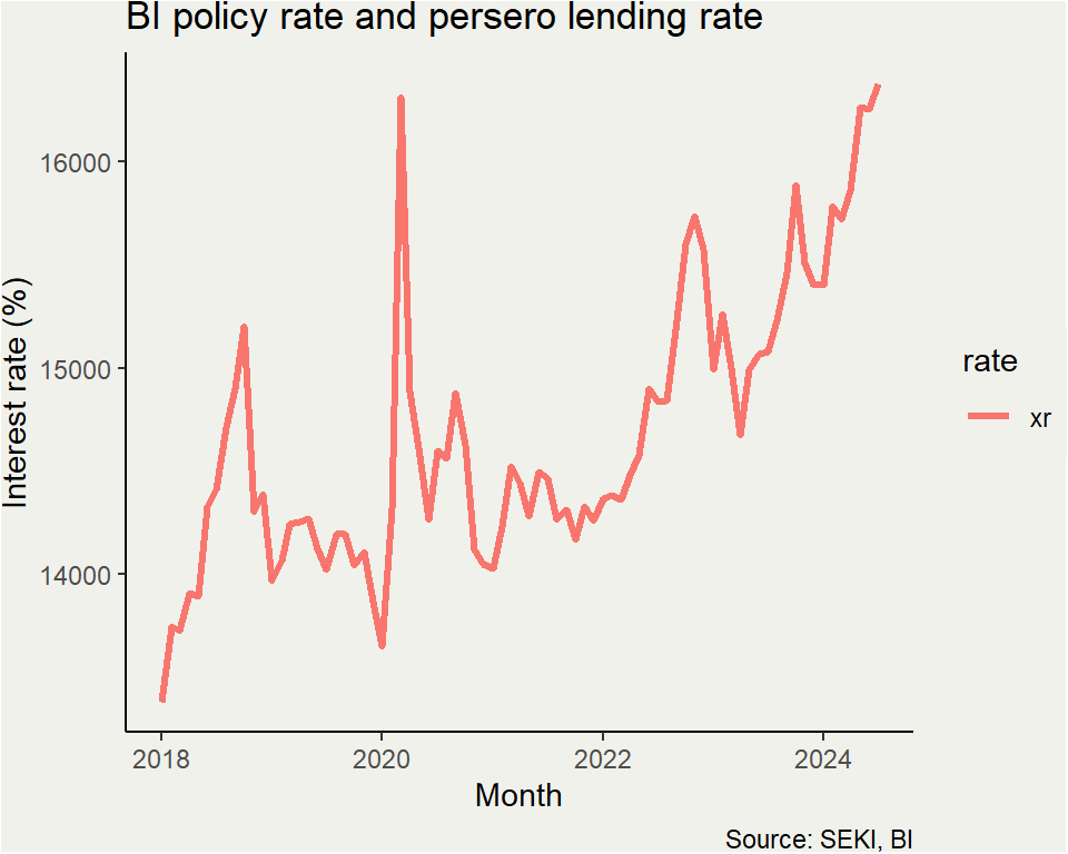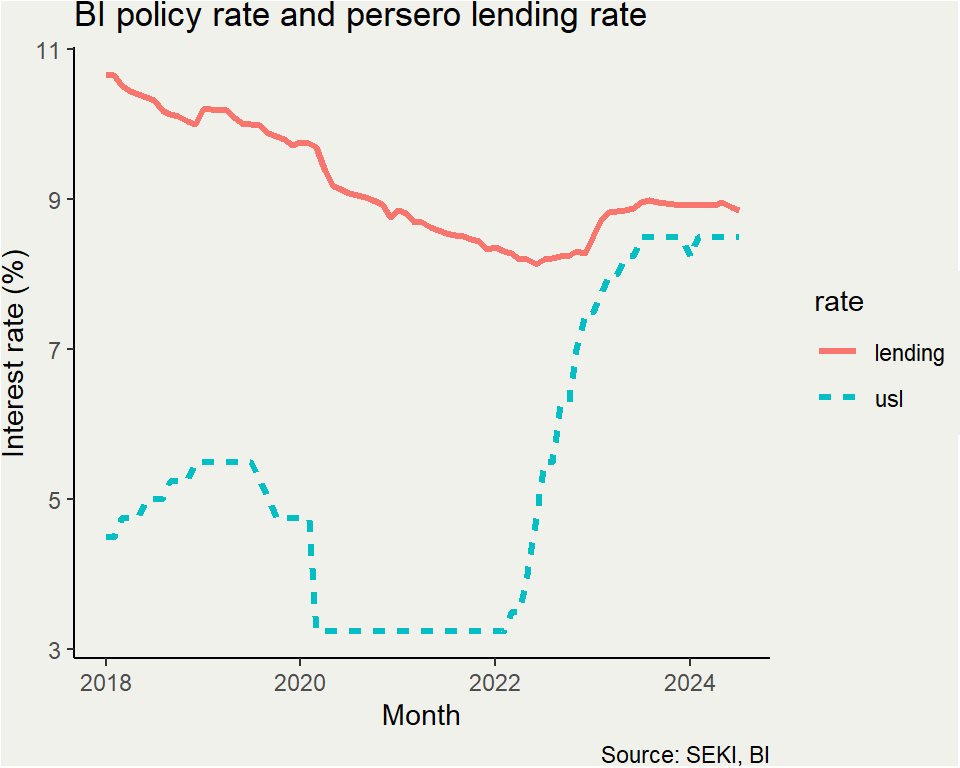 lending is Indonesian lending rate while usl is the US’ prime lending rate. xr is exchange rate. While Indonesian rupiah moves quite liberally,