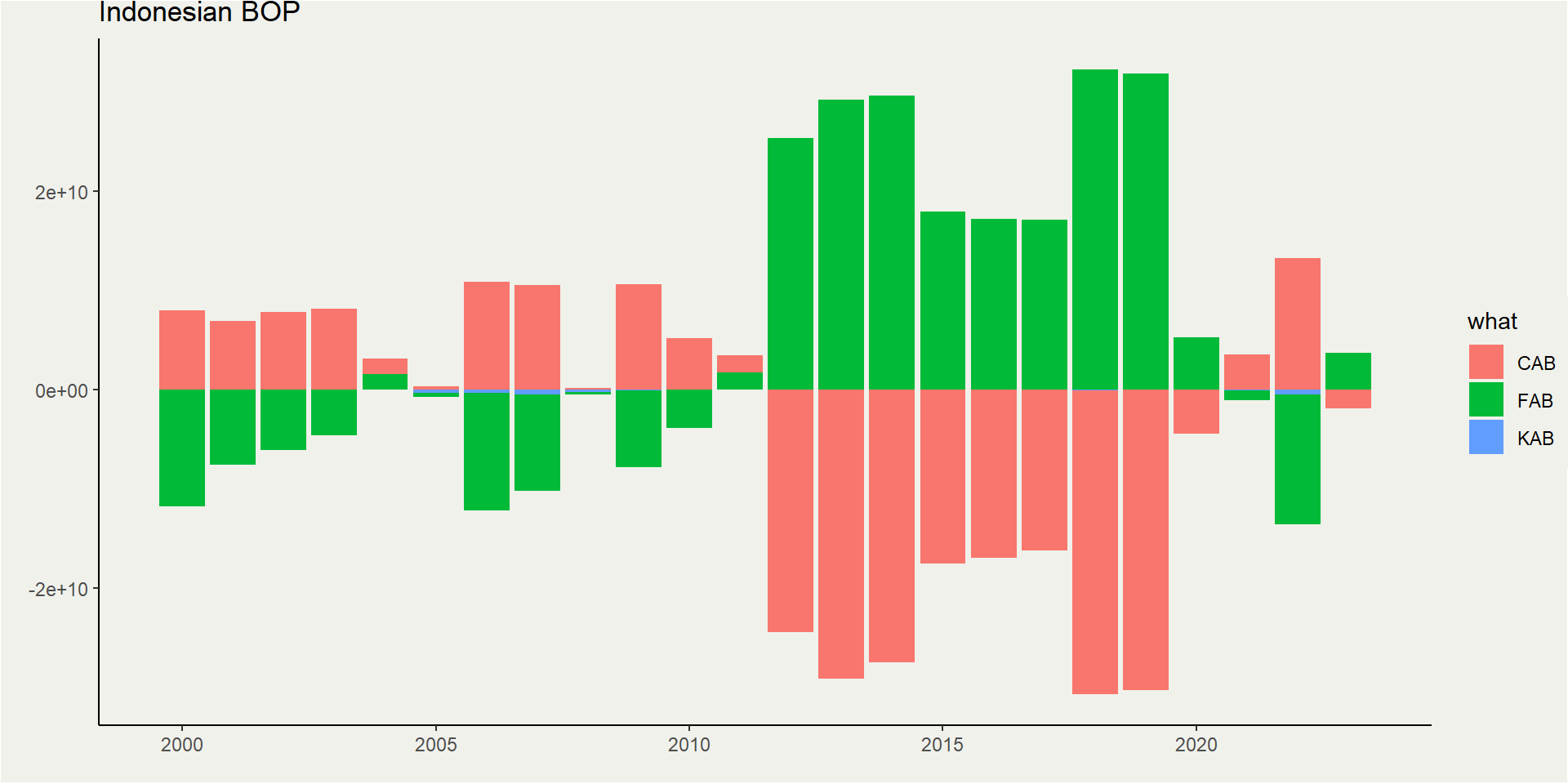 Current account balance (CAB) is simply the difference between Domestic saving (GSav) and investment (Gross Capital Formation, GCF) in Indonesia.