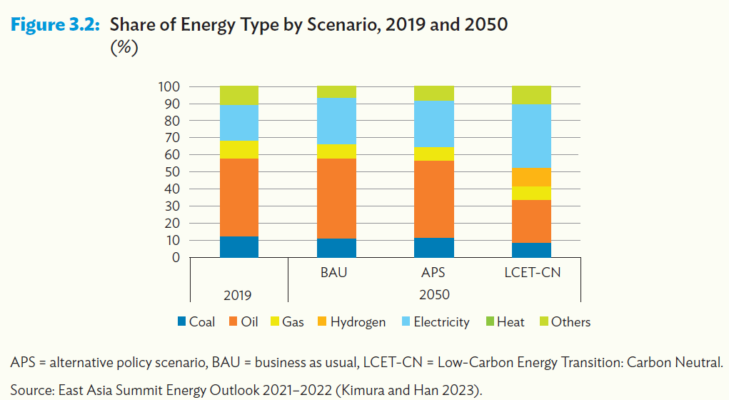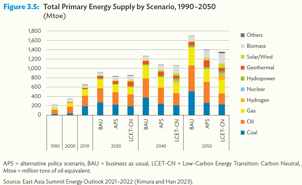 Energy demand in ASEAN is still growing, particularly from high income growth and friendshoring. It is projected that demand will grow to 218% in 2030. Under carbon neutral scenario, this number goes down to only 166%.