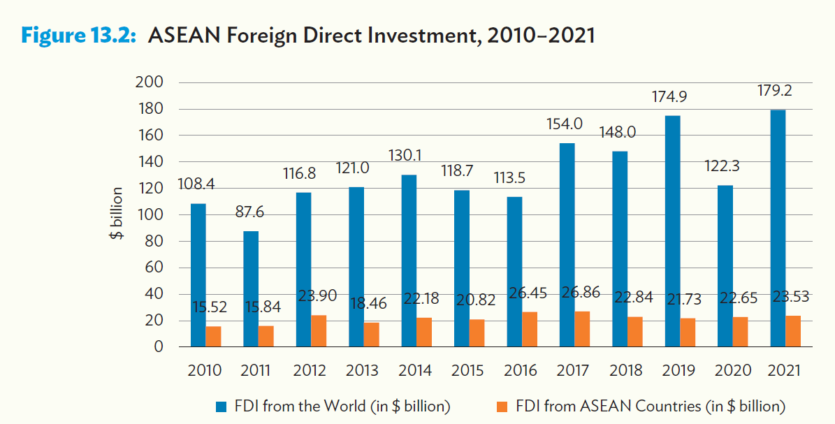 The growing trend of ASEAN’s trade and FDI at the global level also reflects the growing focus on ASEAN, along with the growing influence of Asia, particularly the PRC’s economic rise.