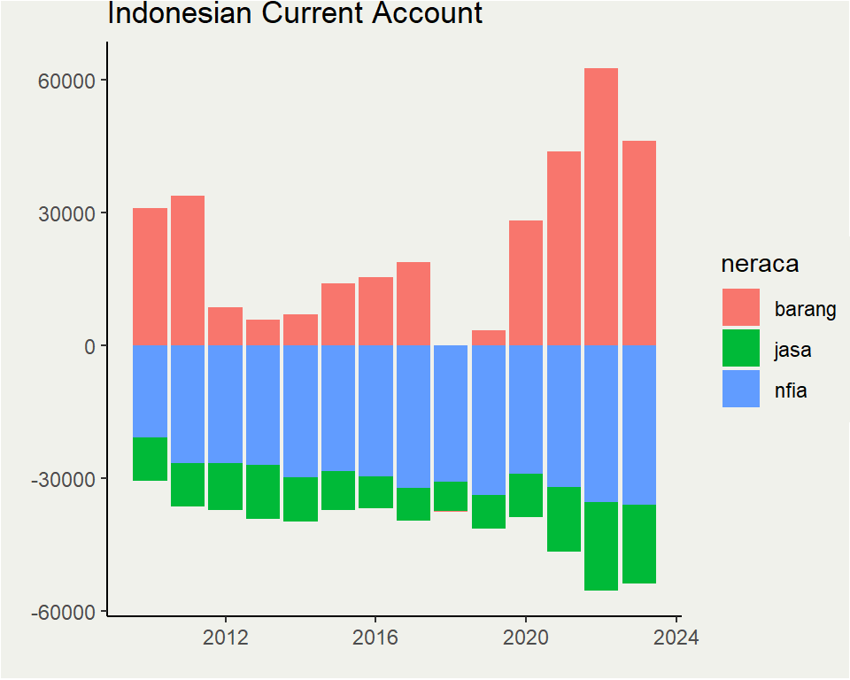 Indonesia selalu CAD sejak pelemahan harga komoditas di 2012.
