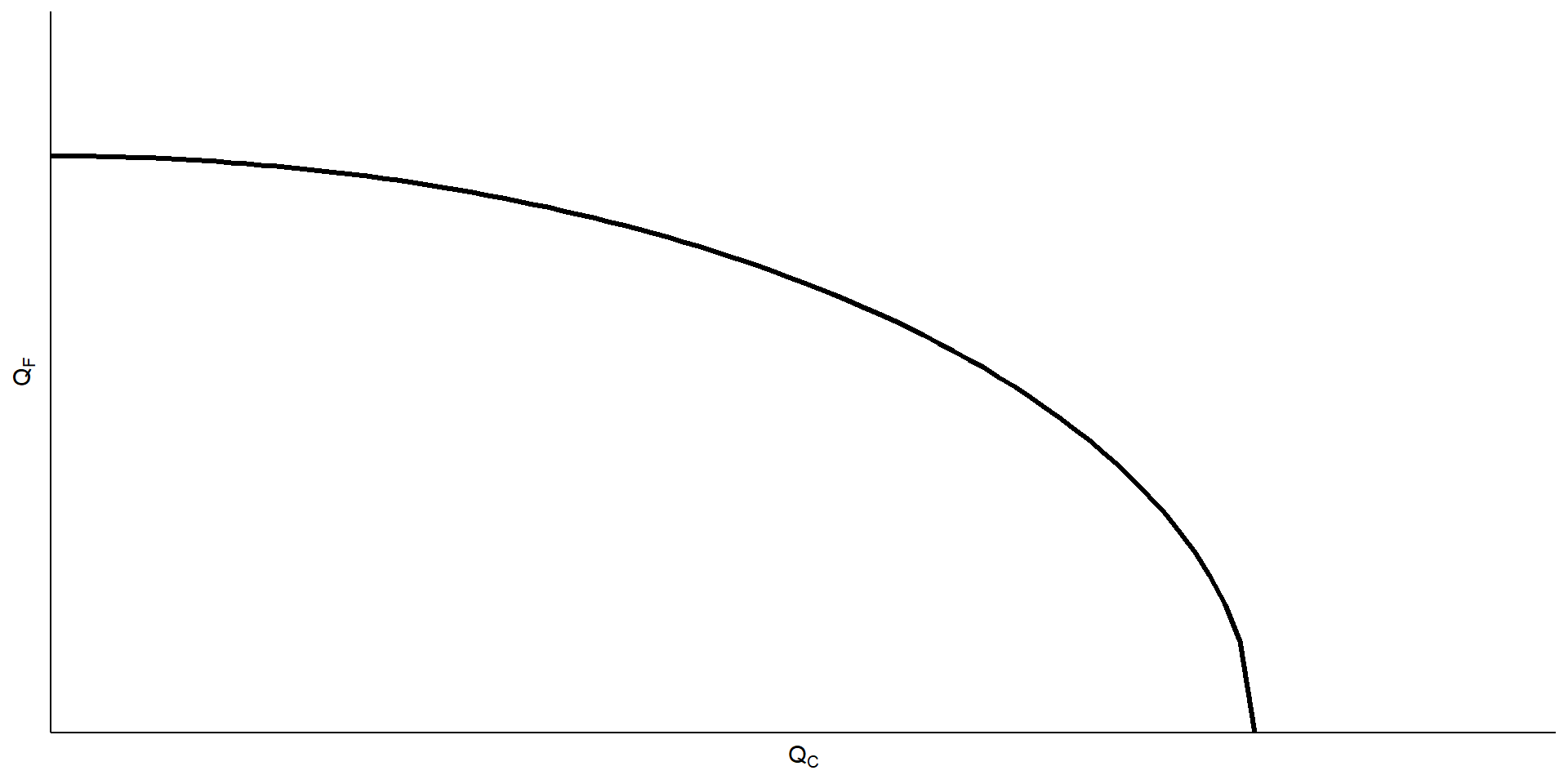 dengan kata lain, untuk menaikkan \(Q_C\) by 1 unit, \(Q_F\) harus turun by \(\frac{MPL_F}{MPL_C}\)