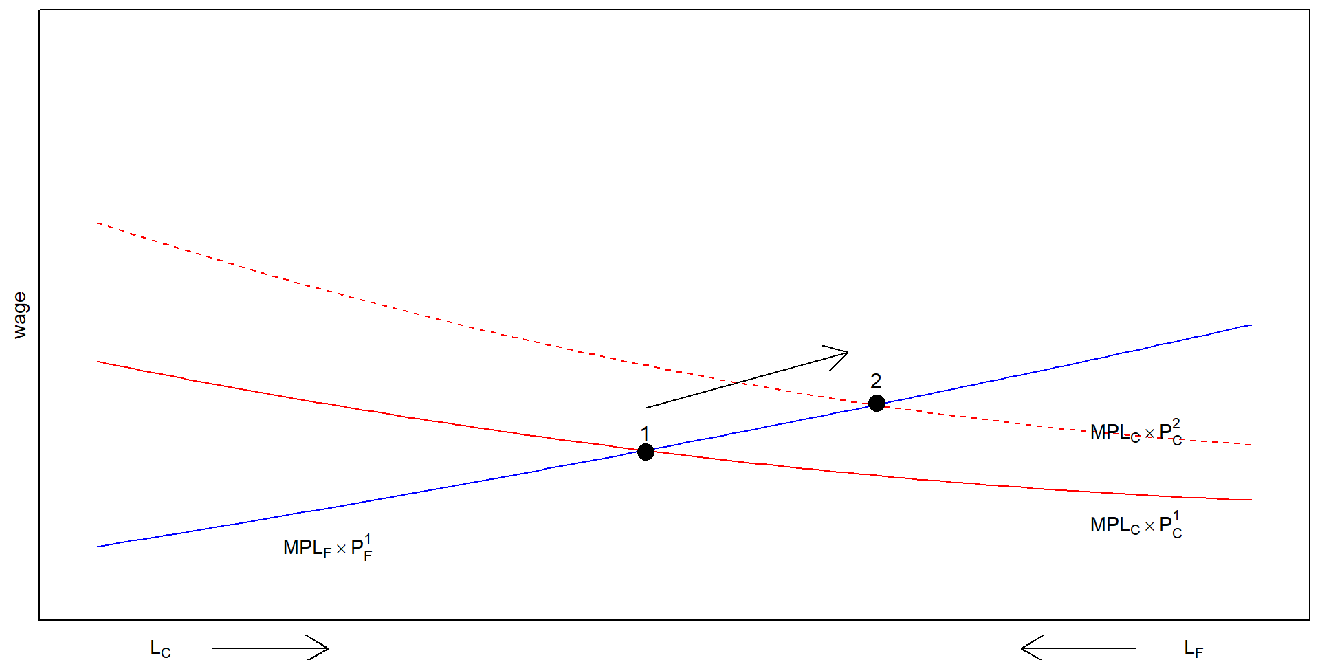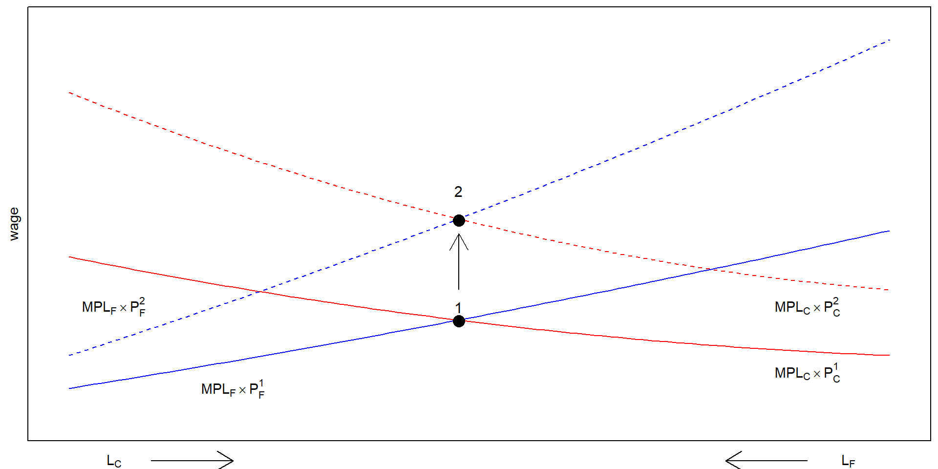 MPL_C \times P_C = MPL_F \times P_F = w \\