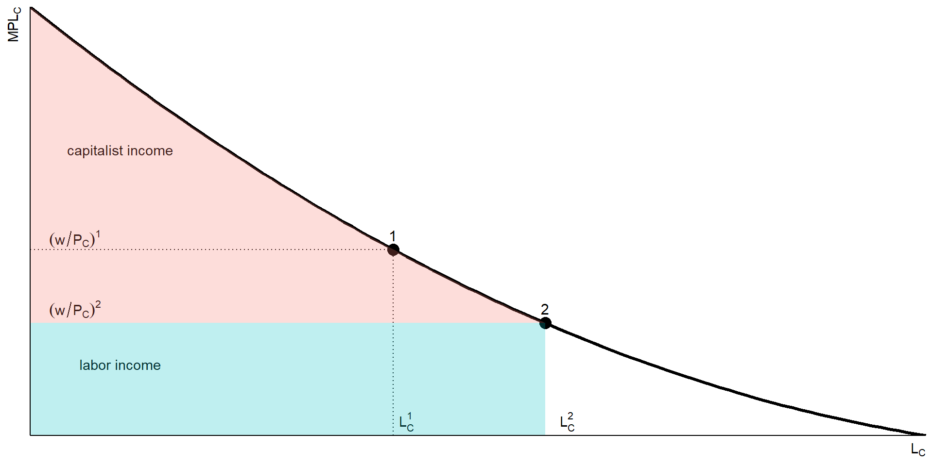 - Semakin naik \(L_C\), \(MPL_C\) semakin turun.